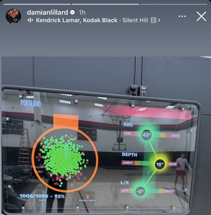 利拉德晒出的是美国篮球现在比较常用的诺亚篮球投篮数据化训练系统,核心是用高速追踪 + 实时反馈帮球员建立稳定、科学的投篮肌肉记忆,目前被90%以上的NBA球队采用。
